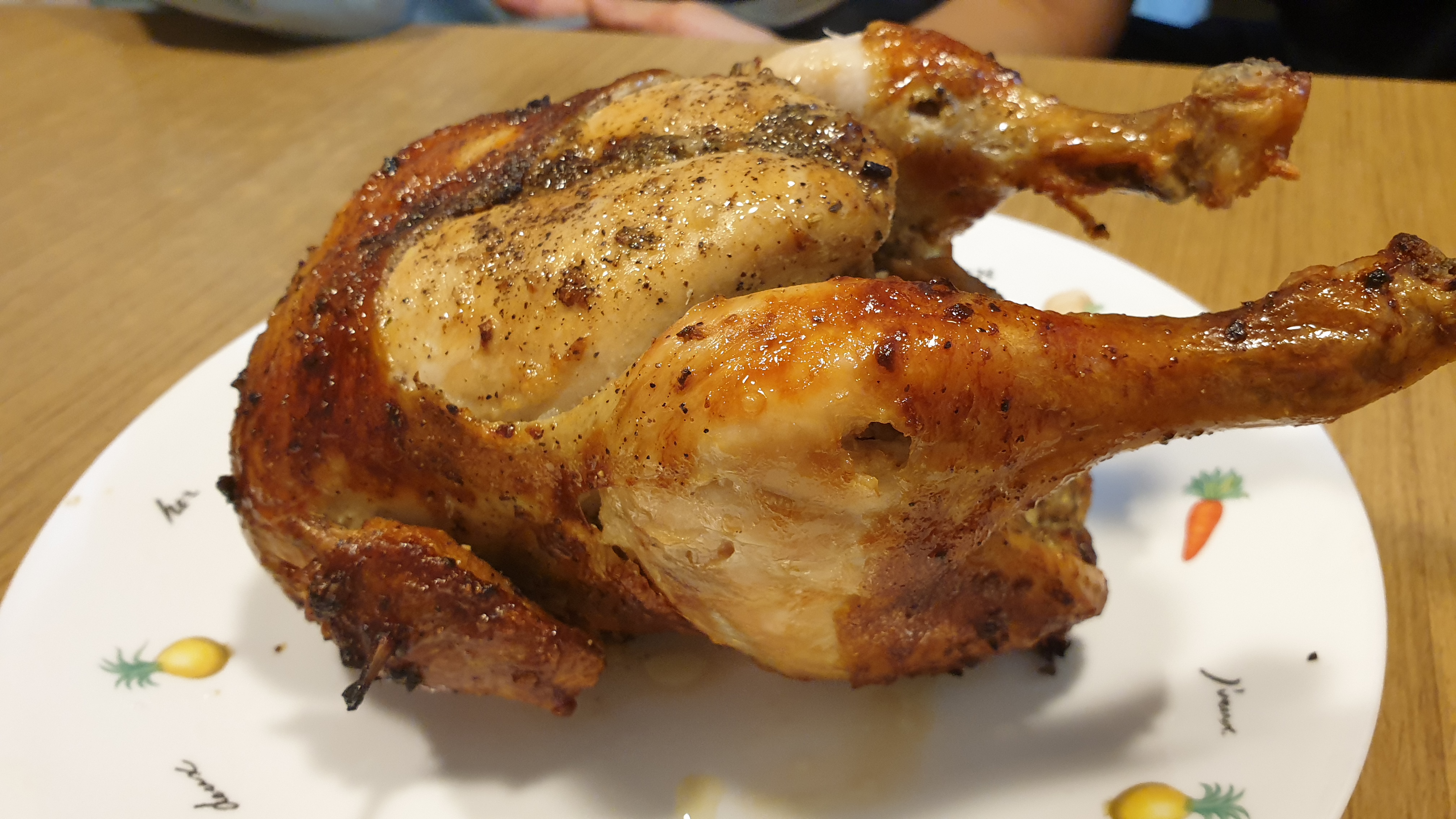 다른 건 몰라도 통닭구이의 가장 맛있는건 껍질이 아닐까 싶다. 적당히 바삭하게 구워져서 노른 노른하니 꼬습게 잘 구워졌다. 생각보다 로티세리의 기능이 꽤나 훌륭하다. 그냥 놓고 통닭 구이를 한 거랑은 그 완성도가 아주 다르다. 다음 번에는 꼭 닭꼬치 로티세리에 도전을 해봐야 겠다. 파랑 마늘 닭고기(닭다리살)을 이용한 꼬지 구이 도전 예약이다.