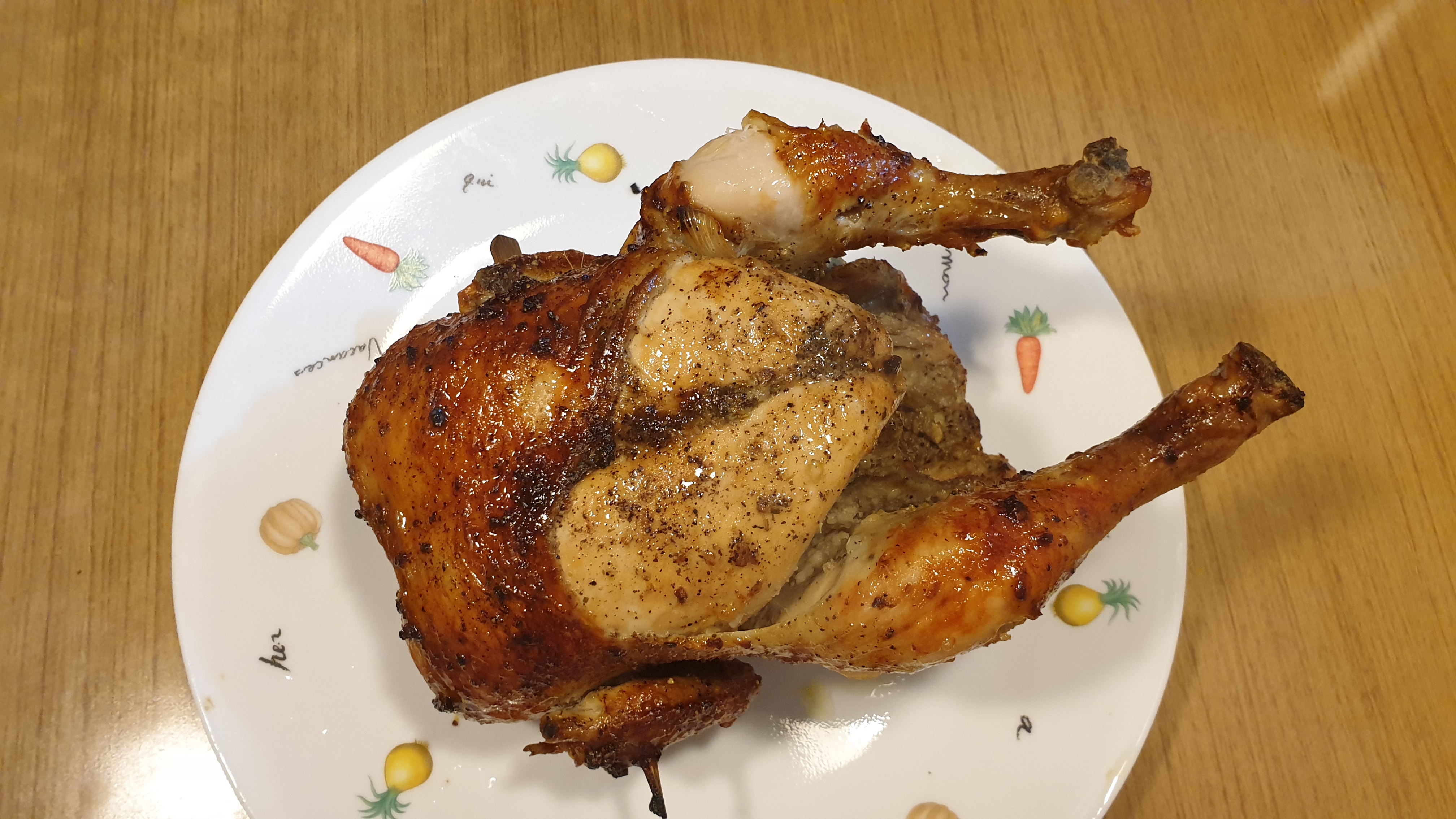 생각보다 생닭의 크기가 중요하다. 너무 크면 돌아가는데 걸리니 너무 무겁거나 큰 놈은 곤란할 듯 싶다. 보통 1Kg 초반 정도의 생닭이 좋을 듯 싶다. 물론 에어프라이기의 크기가 중요하겠지만, 아이닉 16L 짜리를 기준으로 할 때는 적당한 듯 싶다. 너무 크면 닭의 다리와 몸통이 회전 할 때 본체에 닿게 되는 상황이 생긴다.